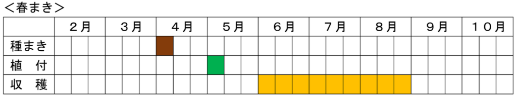- 元肥は栽培場所全面にまいて耕す「全面施肥」にしましょう。収穫期間が長いので、堆肥は多めの方が良いと思います。